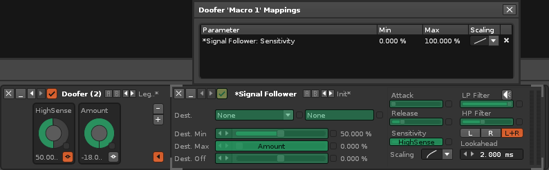 Doofers and Splitters enable the bundling of complex effect chains within a single device and provide easy access to the most useful parameters through macros. Automating a macro will change the values of all assigned parameters.